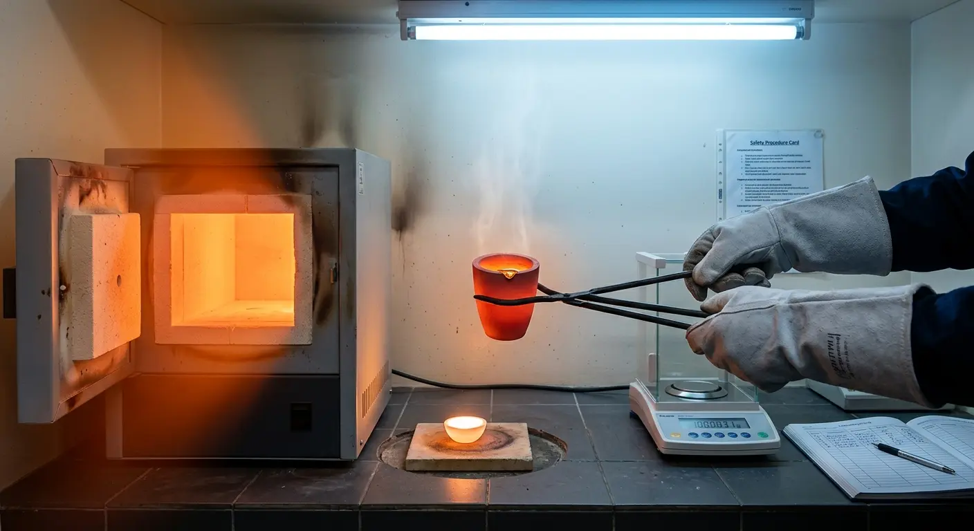Fire assay as the reference method, cross-checked by ICP spectroscopy. Equipment manufacturer, calibration schedule, and sample retention policy available on request.